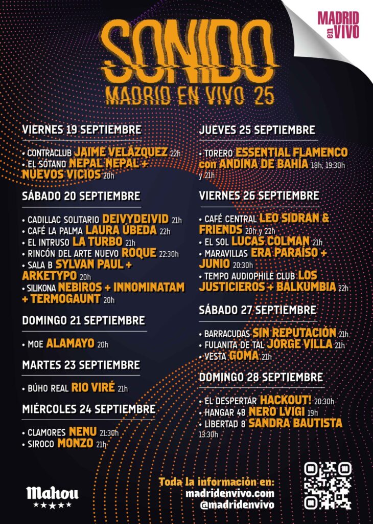 Una nueva edición de SONIDO MADRID EN VIVO 25 abre la temporada en las salas.