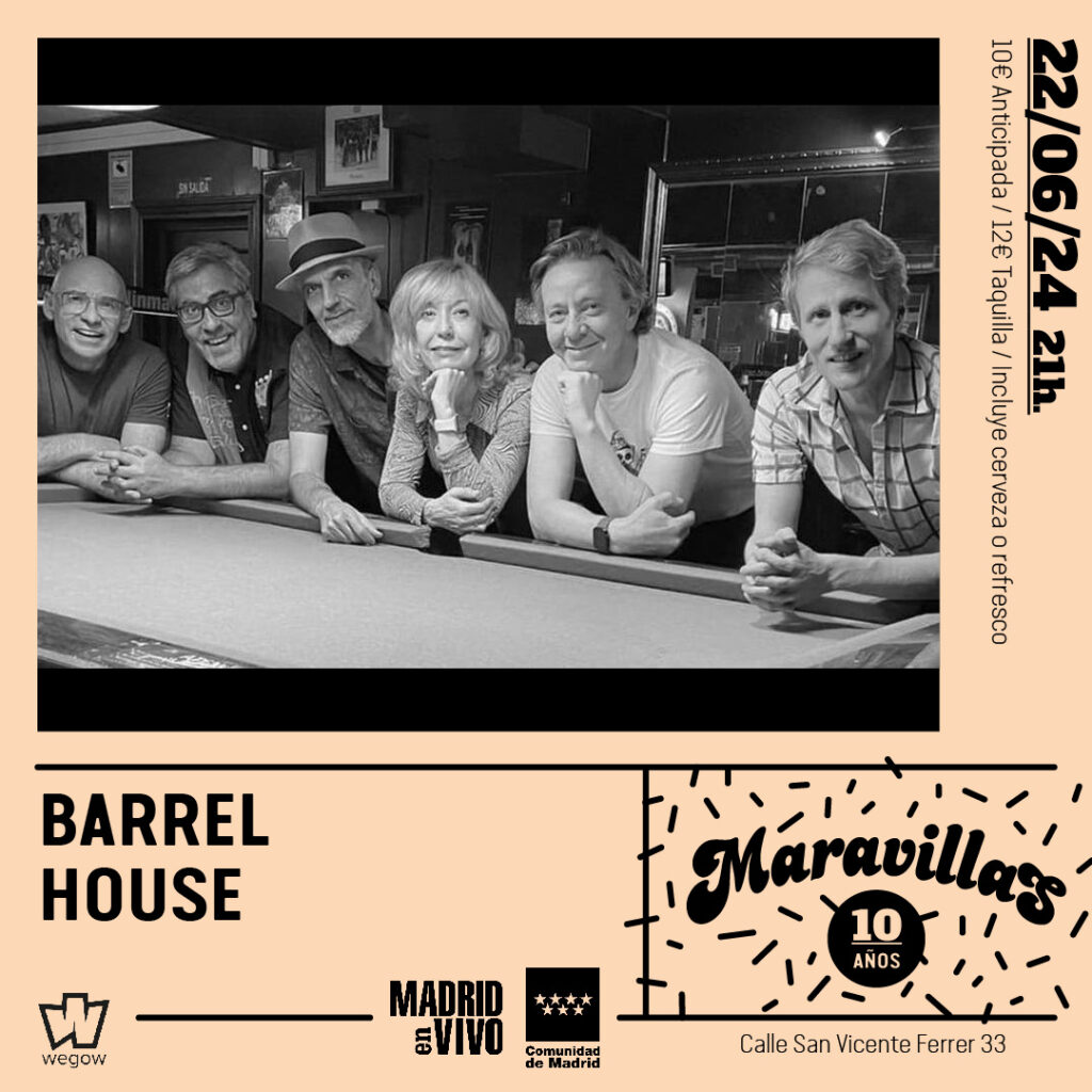 Barrel House es un grupo madrileño que hace un recorrido por los temas más clásicos y enérgicos del género, desde Robert Johnson o Muddy Waters, pasando por los gigantes B.B.King o Fredy King hasta llegar a los grandes del blues de hoy en día, acercándose también a géneros cercanos como el soul o el swing.