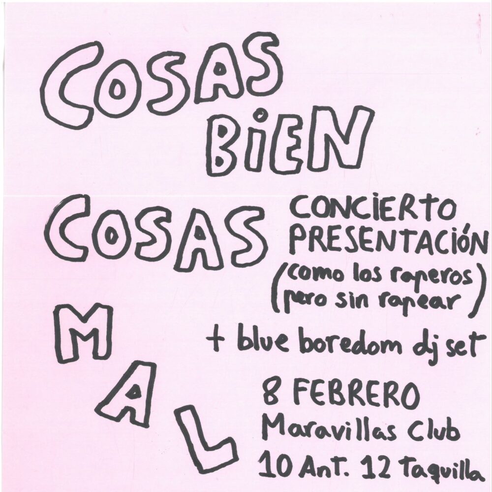 Tomás Avilés, bajo el seudónimo de cosas bien cosas mal, expresa sentimientos y pensamientos sobre el día a día, entre sonidillos y texturitas hechas a través de un casiotone y una caja de ritmos.