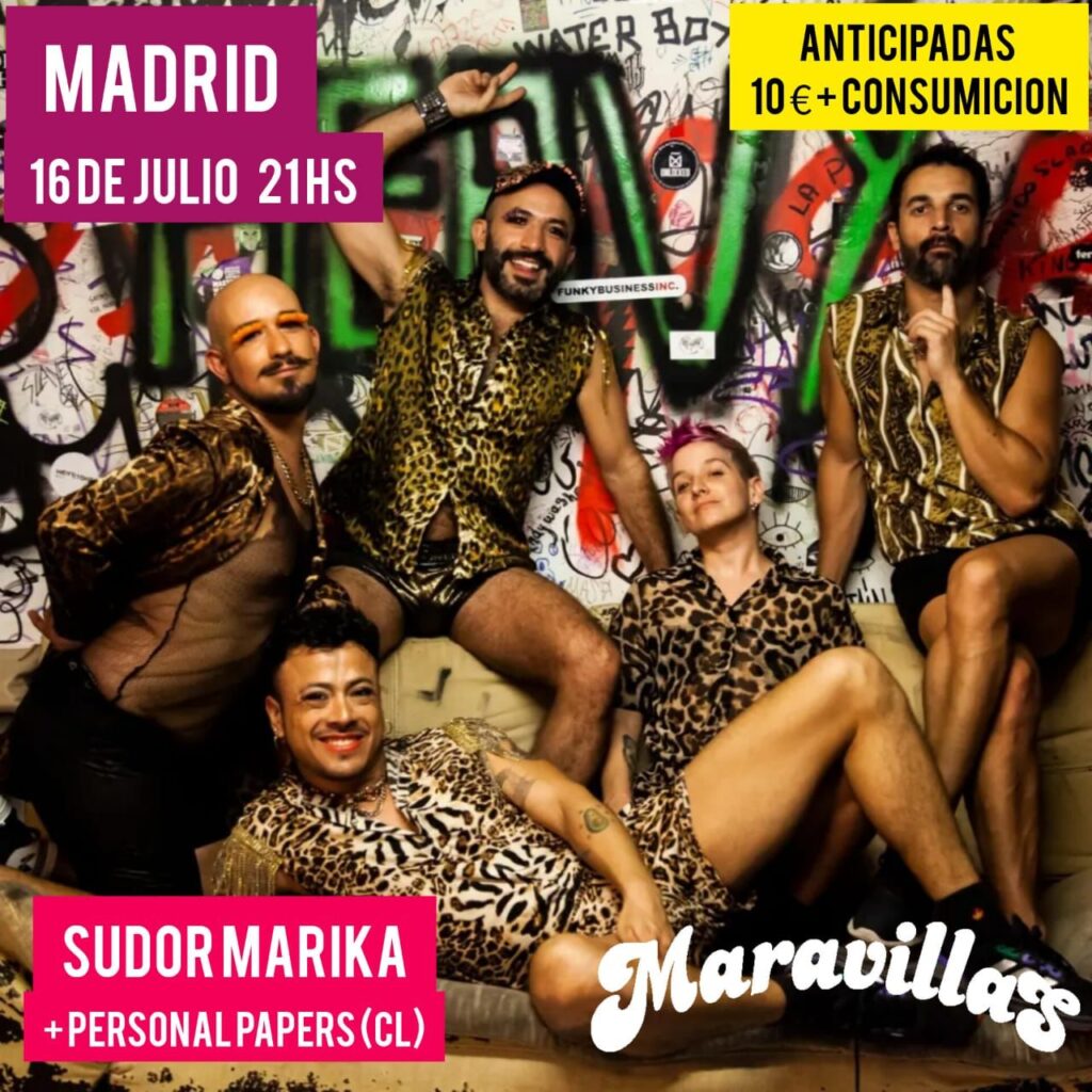Con una formación de seis músicxs, Sudor Marika despliega un show fuera del closet que mezcla destellos del punk de los 80s, la cumbia de los 90s y 00s y la furia alegre de las luchas de las disidencias sexuales.