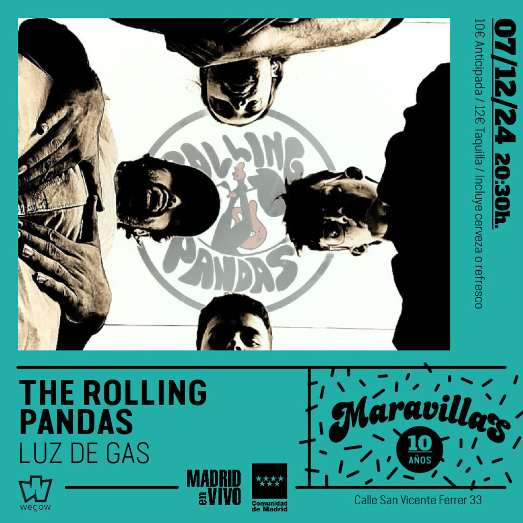 The Rolling Pandas es una banda madrileña surgida en las entrañas de Atocha y formada por Alonso Sanz a la guitarra, Iker Nogueiras a la batería, Jaime López al bajo y Alberto Pastor a la voz y guitarra.